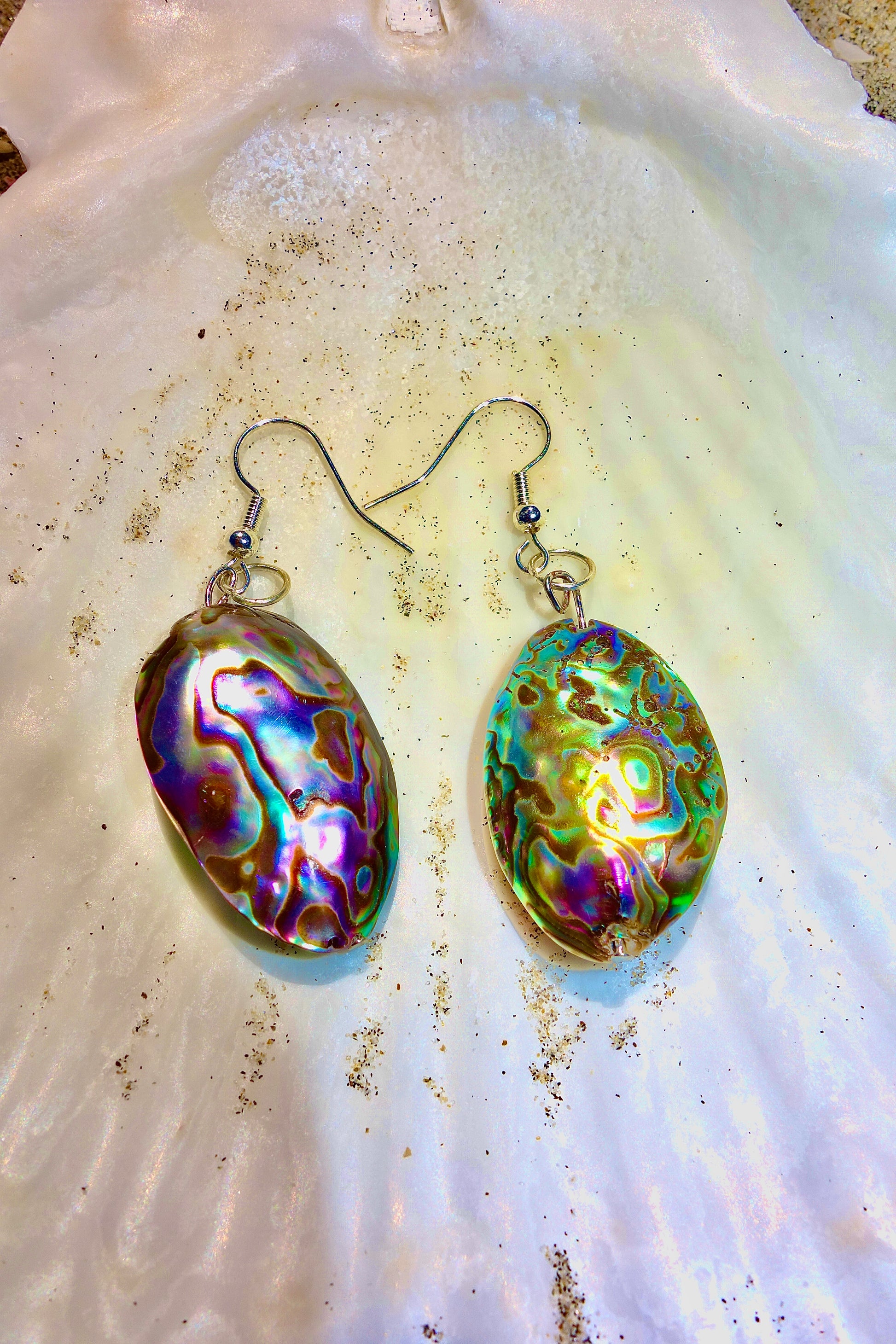 Elevate your style with the captivating beauty of these Iridescent Abalone Shell Dangle Earrings. Handcrafted from genuine abalone shell, each earring showcases a unique swirl of shimmering blues, greens, purples, and golds—reflecting the mesmerizing colors of the ocean. Lightweight and easy to wear, these earrings bring a natural, beach-inspired elegance to any outfit, making them perfect for both everyday wear and special occasions.